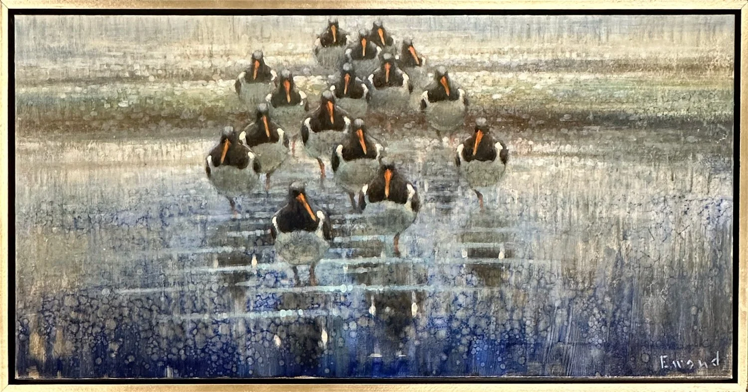 While most wildlife artists paint their subject matter in an attempt at photorealism, de Groot takes a more unique approach to his painting by adding elements of abstraction. To him a good painting is about exploring all different facets of composition, color and technique. While de Groot considers himself a figurative painter, he attempts to find a balance and tension between abstract settings and realism in his subjects. It could be said that he is on the frontier between figurative and non-figurative or in the gray area between traditional and modern. (Read More).
