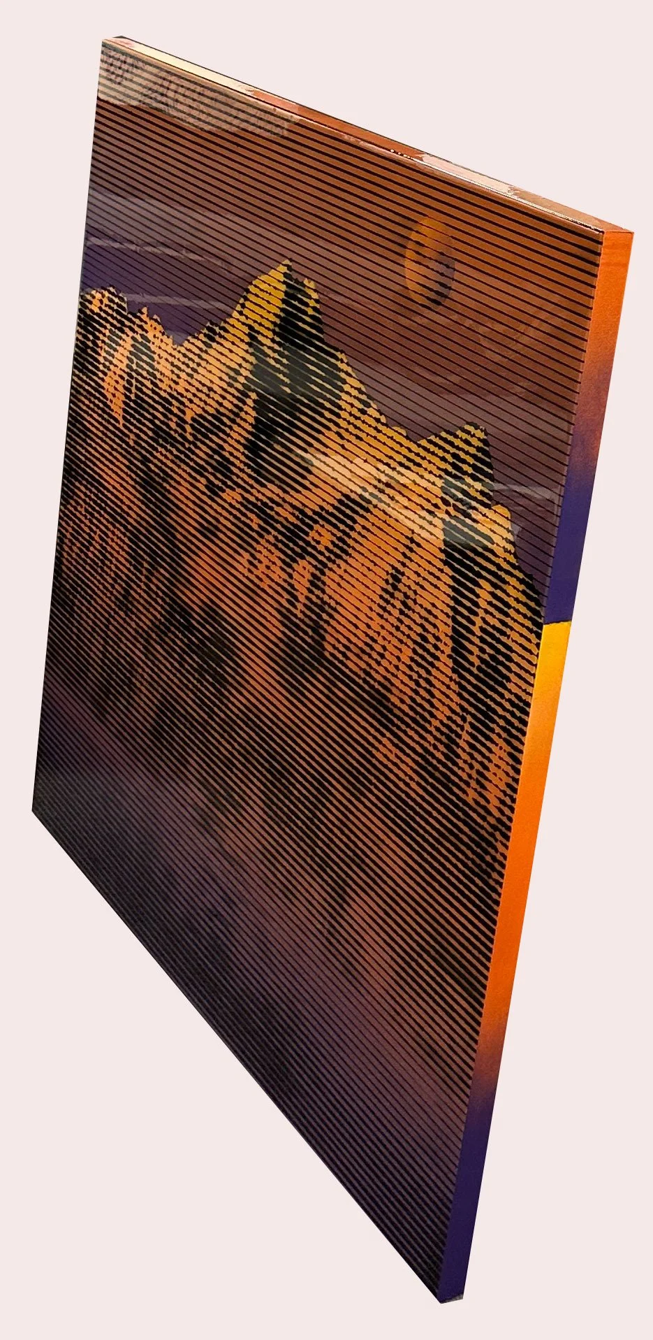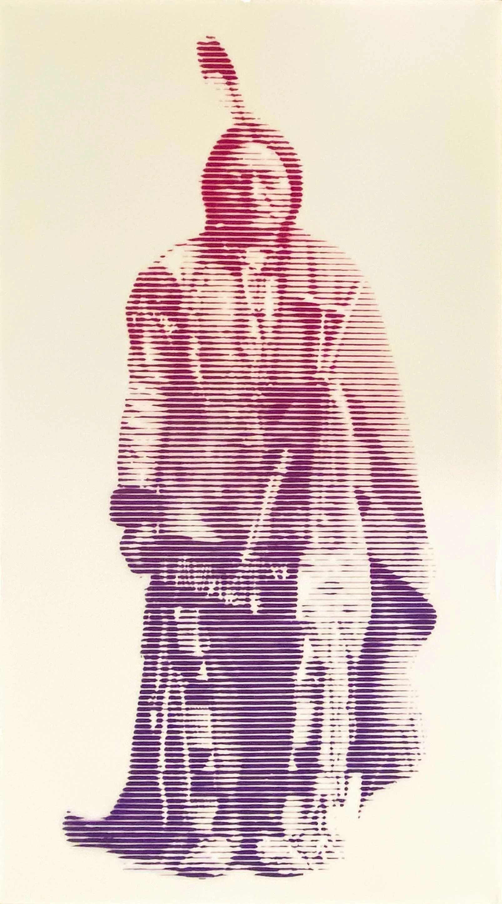 The process behind my paintings are an artform themselves. The most detailed and laborious part of my process is creating a hand-cut stencil using a heavyweight paper and Xacto knife. A typical stencil has 3-6 lines per linear inch and typically takes about a month to complete.